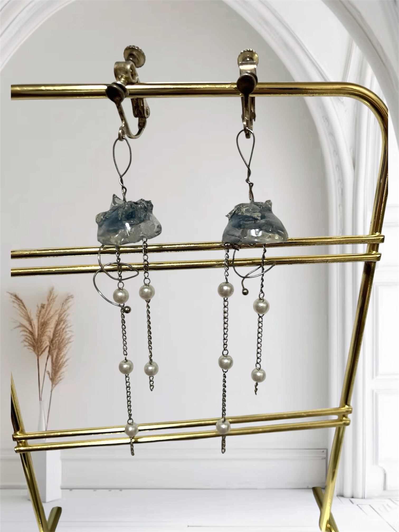 揺れるクラゲ イヤリング ピアス変更可 レジン ハンドメイド 海月 透明 ビーズ